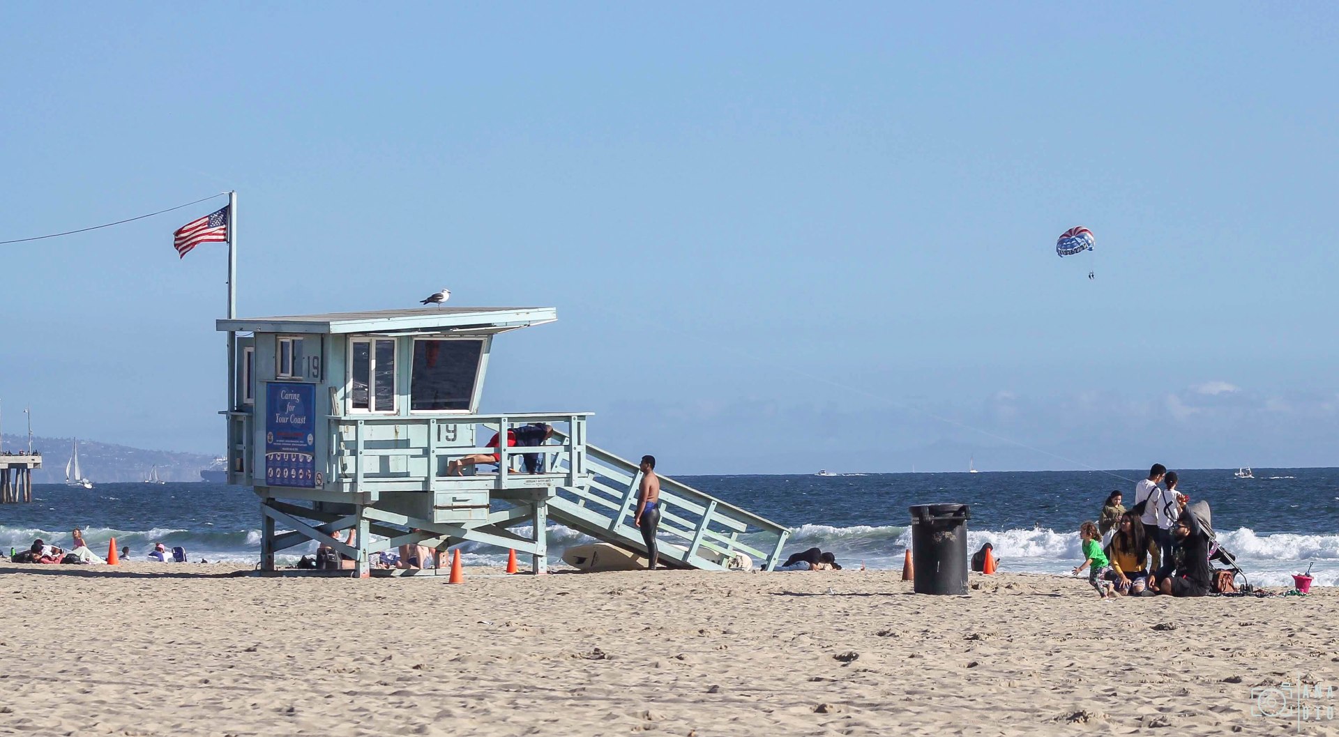 Pour moi, ce sera trempette dans l’Océan Pacifique et ça fait un bien fou ! Avec les « Beach lifeguards Houses » en toile de fond comme dans les films, c’est plutôt cool !