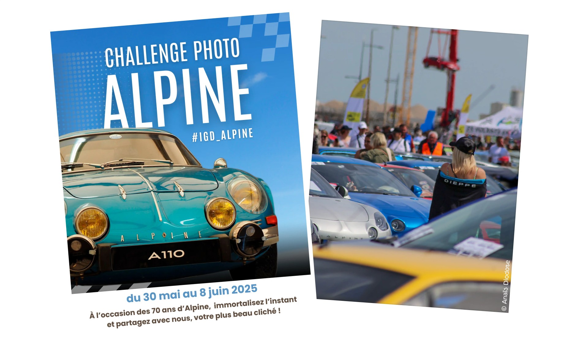 Le principe est simple : partager vos deux plus beaux clichés autour de l’univers Alpine, que ce soit pendant le week-end ou à travers des prises de vue réalisées plus librement. Voitures anciennes, détails mécaniques, ambiance dans les rues ou reflets d’Alpine sur le bitume dieppois…