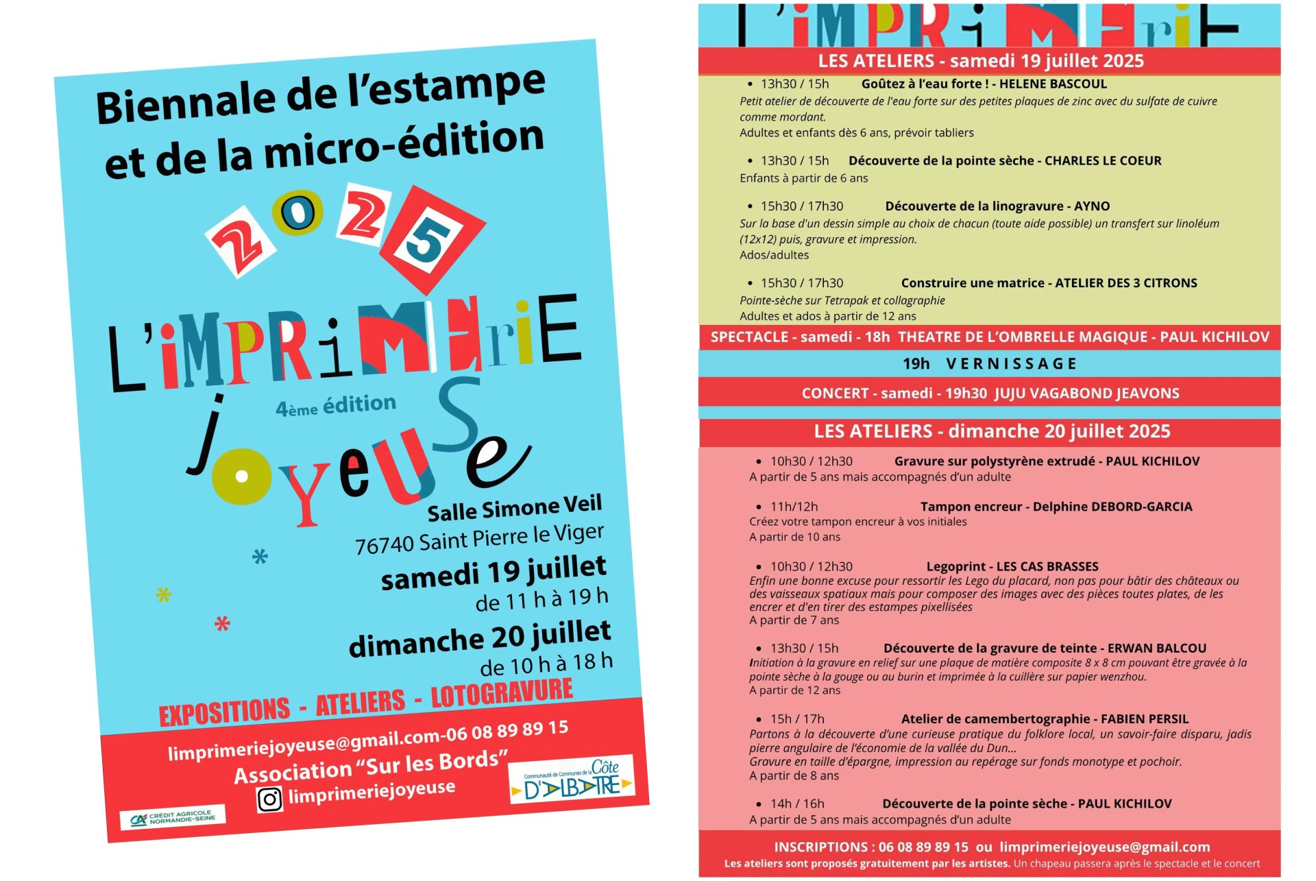 👏 Un immense merci à Fabien Persil, notre guide du jour, pour ses explications, sa passion, et sa capacité à nous faire croire qu’on est de véritables artistes. Et merci également à cet homme très patient (dont je ne connais, malheureusement, pas le nom), qui m’a aidée à bien manier ma gouge – mes doigts lui sont éternellement reconnaissants. Et bien sûr, bravo à l’association Sur les Bords pour cette superbe édition de L’Imprimerie Joyeuse, à laquelle j’ai enfin pu participer ! Vivement la prochaine.