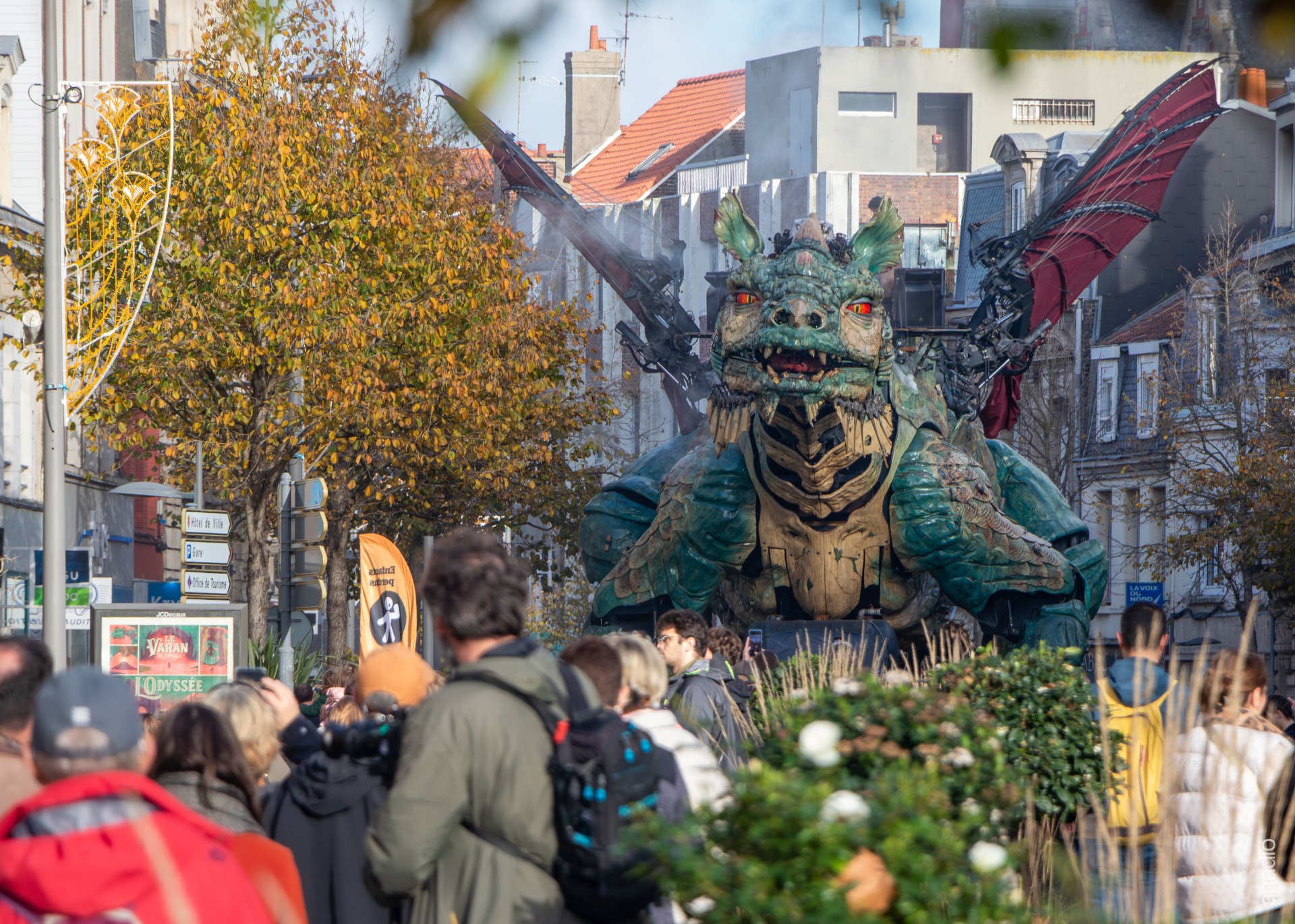 Vendredi, direction la place Crèvecoeur où les gens s’agglutinent, curieux, fébriles. Et soudain, au détour d’une ruelle… Il est là : le Varan de Voyage.